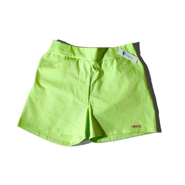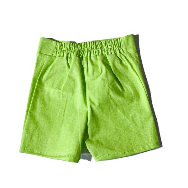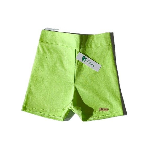 Short de gabardina elastizada color verde manzana con elástico en la parte trasera de la cintura y bolsillos a los cotados (solo en los talles de adulto vienen con bolsillos).